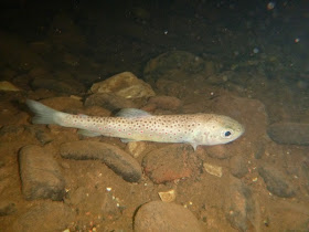 Trout in LNRC sump 1 - seemingly blind and mostly white in colour.